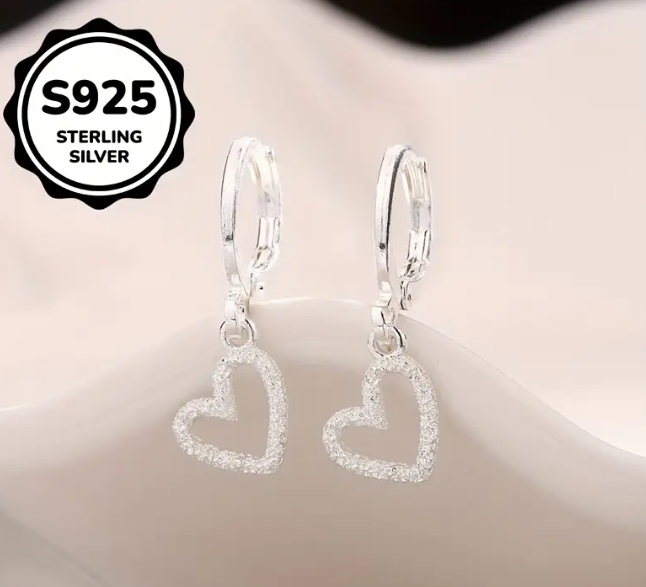 925 Silver Heart Shaped Earrings.